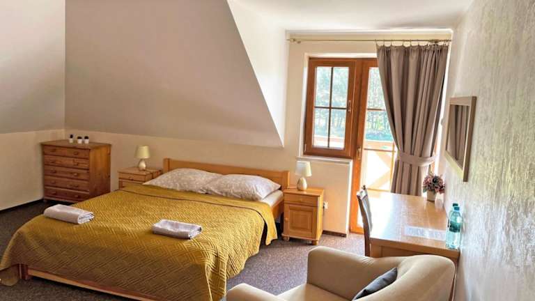Die Doppelzimmer im Hotel Brzozowy Dworek - Winnica Lipowiec sind gemütlich und komfortabel eingerichtet und verfügen über ein eigenes Badezimmer. Im Erdgeschoss des Hauses befindet sich ein großes Wohnzimmer mit einer voll ausgestatteten Küche und einer TV-Ecke. Die überdachte Terrasse bietet einen entspannten Ort zum Lesen und Genießen einer Tasse Kaffee.