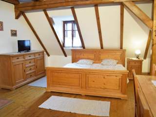 Die Zimmer im Hotel Bučický mlýn sind gemütlich eingerichtet und verfügen über einen Kleiderschrank, einen Flachbild-TV und ein eigenes Bad. Bettwäsche und Handtücher werden gestellt.