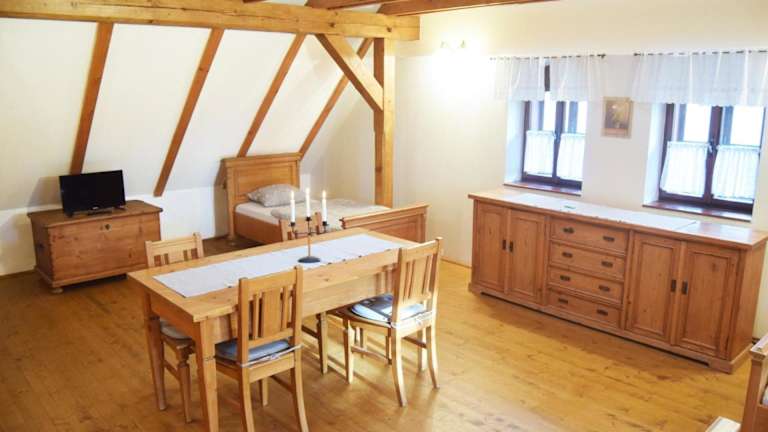 Im Bučický mlýn können Sie im hauseigenen Restaurant speisen oder den Grill nutzen, um Ihre eigenen Mahlzeiten zuzubereiten.