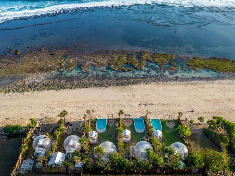 Das Bubble Hotel Nyang Nyang - Adults only in Badung ist ein einzigartiges und luxuriöses Hotel, das nur wenige Schritte vom Strand Nyang Nyang entfernt liegt. Hier können Sie in einem voll ausgestatteten Zelt mit kostenfreiem WLAN und Klimaanlage übernachten und den Zugang zu einem schönen Garten und einem erfrischenden Außenpool genießen. Die Unterkunft bietet eine ideale Lage, um den Uluwatu-Tempel und Garuda Wisnu Kencana zu besuchen. Der internationale Flughafen Denpasar ist ebenfalls leicht zu erreichen.