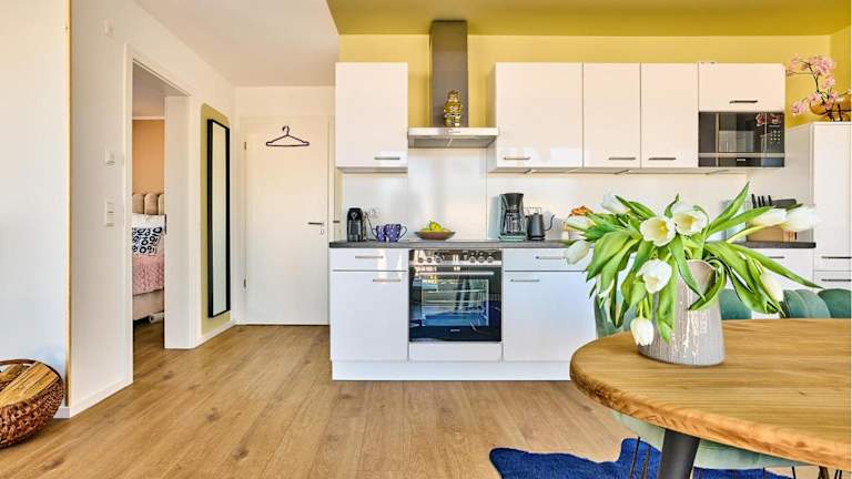 Die Ferienwohnung umfasst ein Schlafzimmer, ein Wohnzimmer und eine gut ausgestattete Küche mit Kühlschrank und Geschirrspüler. Des Weiteren steht ein Balkon zur Verfügung. Kostenloses WLAN ist in der gesamten Unterkunft verfügbar.