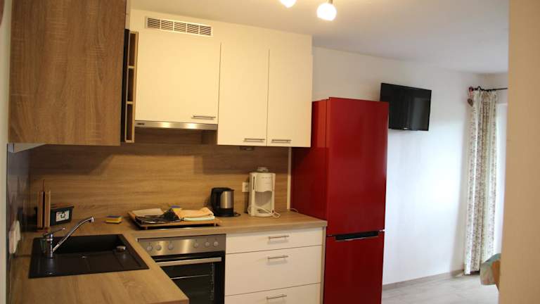 Die Wohneinheiten im Bucherhof sind mit Parkettböden ausgestattet und verfügen über eine voll ausgestattete Küche, die einen Kühlschrank, eine Mikrowelle, eine Kaffeemaschine sowie einen Essbereich umfasst. Die Zimmer bieten zudem einen Flachbild-TV mit Satellitenkanälen und ein eigenes Badezimmer mit Dusche und Haartrockner.