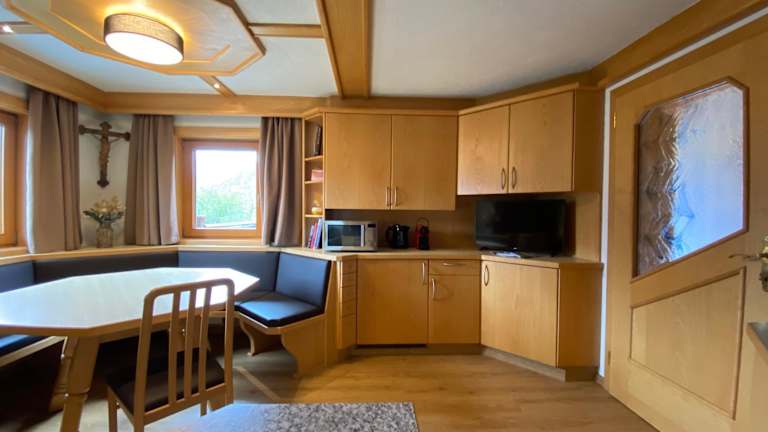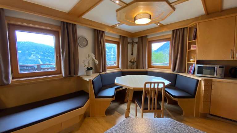 Das Apartment im Budamerhof bietet Ihnen zwei gemütliche Schlafzimmer und ein Badezimmer. Die Zimmer sind mit Bettwäsche und Handtüchern ausgestattet. Der Wohnbereich verfügt über einen Flachbild-Sat-TV und einen Essbereich, wo Sie Ihre Mahlzeiten genießen können. Die voll ausgestattete Küche bietet Ihnen alle Annehmlichkeiten, um Ihre Lieblingsspeisen zuzubereiten. Von der Terrasse aus haben Sie einen atemberaubenden Blick auf die umliegenden Berge.