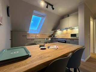 "Das Apartment ""Scheune - "" verfügt über eine gut ausgestattete Küche mit Geschirrspüler, Backofen, Mikrowelle und Wasserkocher. Ein TV sorgt für Unterhaltungsmöglichkeiten. Zur weiteren Ausstattung gehören eine Sauna, ein Fitnesscenter und ein Grillplatz, die Ihnen zur Verfügung stehen."