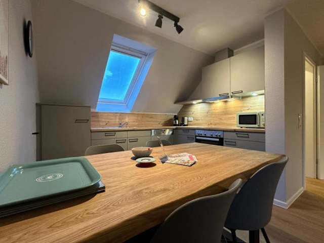 "Das Apartment ""Scheune - "" befindet sich auf der Insel Fehmarn, etwa 8 km vom Fehmarnsund entfernt. Die Lage ermöglicht es Ihnen, die idyllische Umgebung der Insel zu erkunden und die nahegelegenen Yachthäfen Burgtiefe und Burgstaaken zu besuchen. Der Flughafen Rostock ist etwa 89 km entfernt."