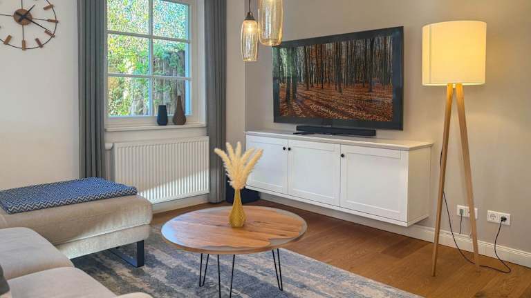 Die Unterkunft umfasst 3 Schlafzimmer und ein Wohnzimmer sowie eine voll ausgestattete Küchenzeile mit Kühlschrank und Kaffeemaschine. Zudem sind 2 Badezimmer vorhanden, ausgestattet mit Dusche und Haartrockner. Ein Flachbild-TV gehört ebenfalls zur Ausstattung.