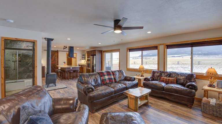 Das Ferienhaus GNAR Ranch verfügt über 3 Schlafzimmer und 2 Badezimmer. Es bietet Ihnen eine komfortable und moderne Ausstattung mit Bettwäsche, Handtüchern, einem Flachbild-TV, einem Essbereich und einer voll ausgestatteten Küche. Von der Terrasse aus können Sie den atemberaubenden Blick auf die Berge genießen.