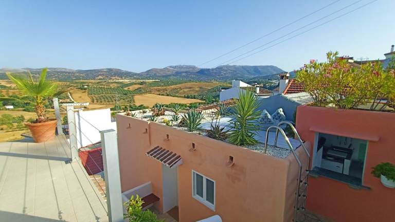 Die Zimmer im Buena Vista Ronda Club verfügen über eine Terrasse mit Stadtblick, ein eigenes Bad mit kostenfreien Pflegeprodukten, Klimaanlage, Heizung, einen Bluetooth-Musik-Player und einen Flachbild-TV.