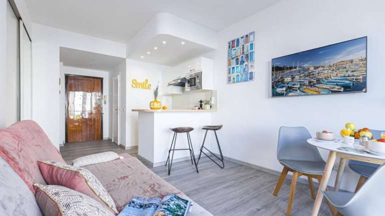 Die Unterkunft umfasst 1 Schlafzimmer, ein Wohnzimmer und eine voll ausgestattete Küche, die mit einem Kühlschrank und einer Kaffeemaschine ausgestattet ist. Es gibt 1 Badezimmer mit einem Bidet, kostenlosen Pflegeprodukten, sowie Handtüchern und Bettwäsche, die zur Verfügung gestellt werden. Außerdem ist die Ferienwohnung klimatisiert und verfügt über einen Balkon.