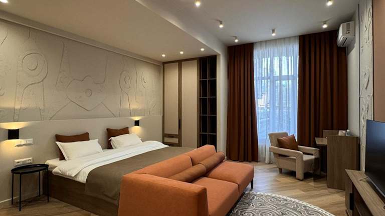 Das Bugu Hotel Bishkek in Bischkek bietet haustierfreundliche Unterkünfte mit kostenfreiem WLAN und kostenlosem Privatparkplatz. Die Zimmer sind klimatisiert und verfügen über einen Flachbild-Sat-TV. Entspannen Sie in einigen Zimmern im gemütlichen Sitzbereich und genießen Sie Annehmlichkeiten wie einen Wasserkocher und ein eigenes Bad mit Bademänteln, Hausschuhen und kostenfreien Pflegeprodukten. Das Hotel verfügt außerdem über eine 24-Stunden-Rezeption. Der internationale Flughafen Manas liegt nur 22 km entfernt.