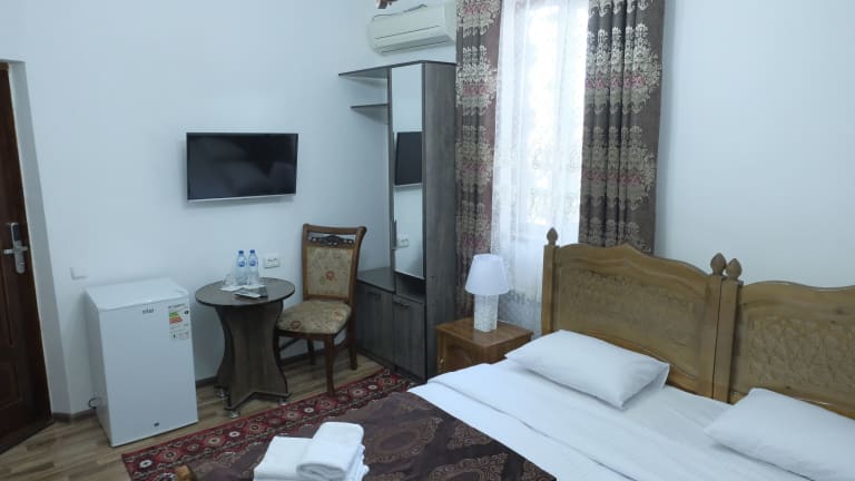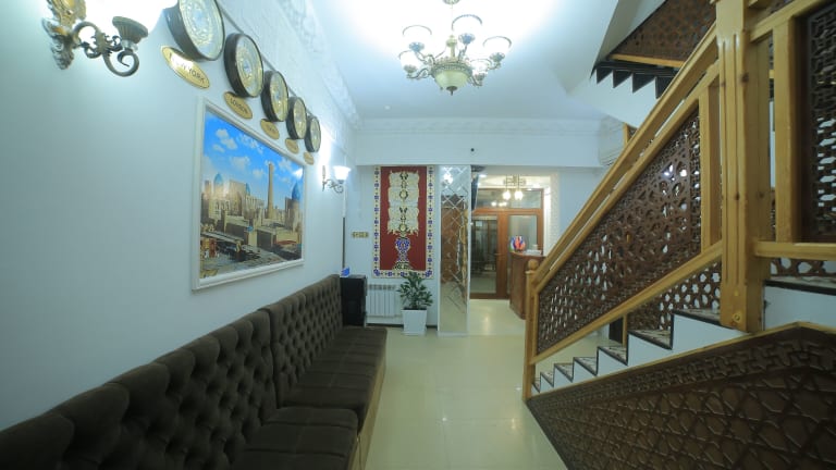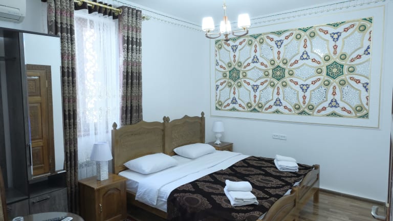 Das Bukhara Baraka Boutique Hotel in Buchara ist eine ideale Wahl für Reisende, die eine einzigartige und komfortable Unterkunft suchen. Mit seinem freundlichen Personal, dem Restaurant und der Bar sowie dem kostenfreien WLAN bietet das Hotel alle Annehmlichkeiten für einen angenehmen Aufenthalt. Die klimatisierten Zimmer sind modern eingerichtet und verfügen über einen Flachbild-Sat-TV, einen Kühlschrank und einen Wasserkocher. Einige Zimmer bieten zudem einen schönen Blick auf die Stadt. Das Hotel bietet auch einen Fahrrad- und Autoverleih, um die Umgebung zu erkunden.