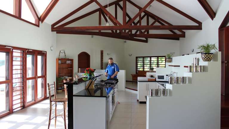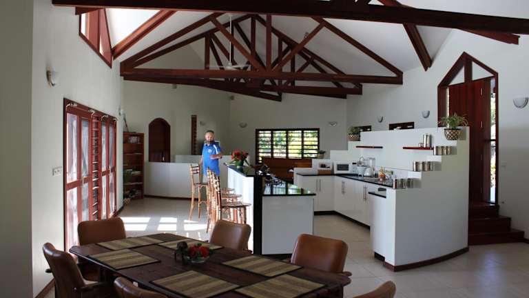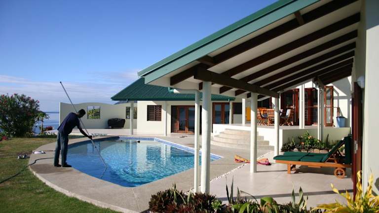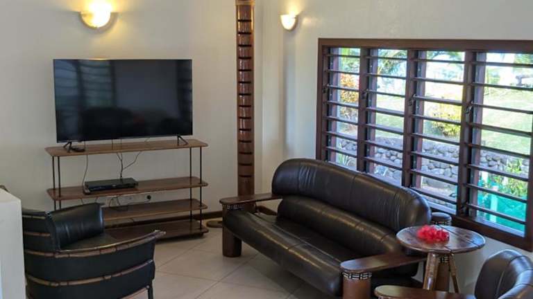 Die Bularangi Villa in Fiji bietet eine elegante Unterkunft mit einem eigenen Pool, einem Garten und einer Veranda mit Meerblick. Zur Ausstattung gehören kostenloses WLAN und Privatparkplätze. Die Villa umfasst einen DVD-Player, eine voll ausgestattete Küche, ein Wohnzimmer und drei Schlafzimmer mit drei Badezimmern.