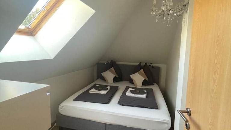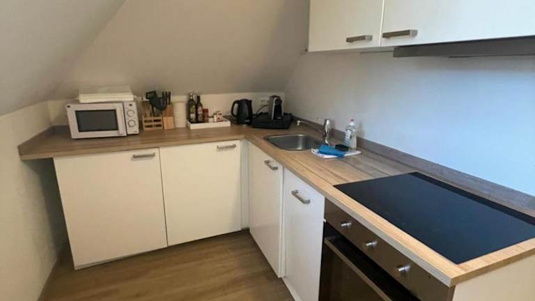 Die Ferienwohnung verfügt über eine voll ausgestattete Küche mit einem Geschirrspüler und einer Kaffeemaschine, wodurch die Möglichkeit zur Selbstverpflegung besteht. Handtücher und Bettwäsche werden bereitgestellt.