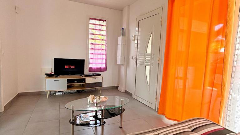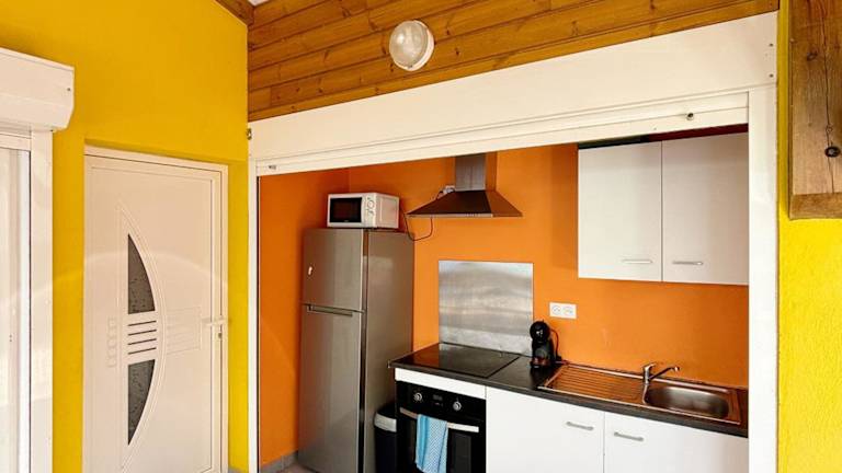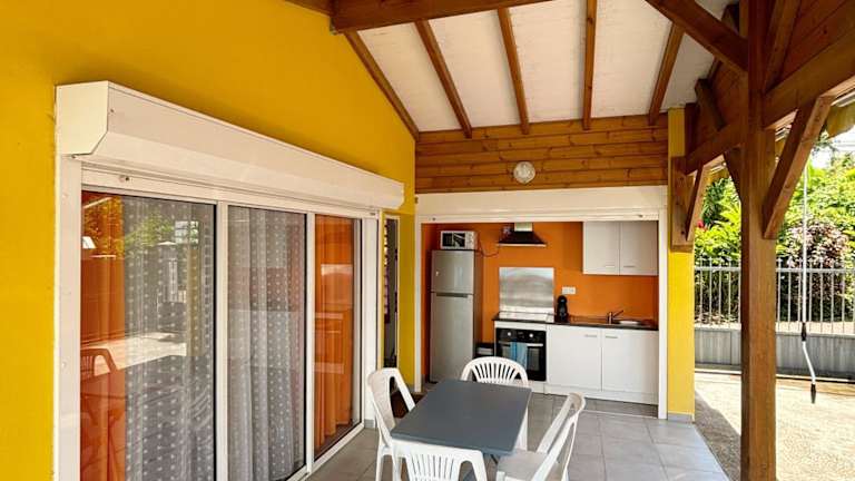 Das klimatisierte Ferienhaus im Bung'hello Village, Piscine et Parking gratuit verfügt über ein gemütliches Schlafzimmer, ein geräumiges Wohnzimmer und eine voll ausgestattete Küche. Die Küche bietet einen Kühlschrank und eine Kaffeemaschine, so dass Sie Ihre eigenen Mahlzeiten zubereiten können. Das Badezimmer ist mit einer Dusche und kostenlosen Pflegeprodukten ausgestattet. Handtücher und Bettwäsche werden im Ferienhaus gestellt, so dass Sie sich um nichts kümmern müssen.