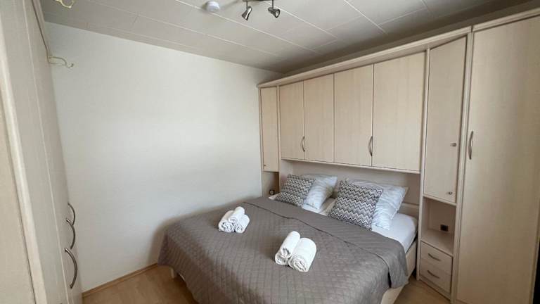 Der Bungalow ist mit zwei Schlafzimmern ausgestattet und bietet eine voll ausgestattete Küchenzeile. Die Küche enthält einen Kühlschrank, einen Geschirrspüler, eine Waschmaschine, einen Ofen und eine Mikrowelle. Zudem stehen ein TV sowie Handtücher und Bettwäsche zur Verfügung.