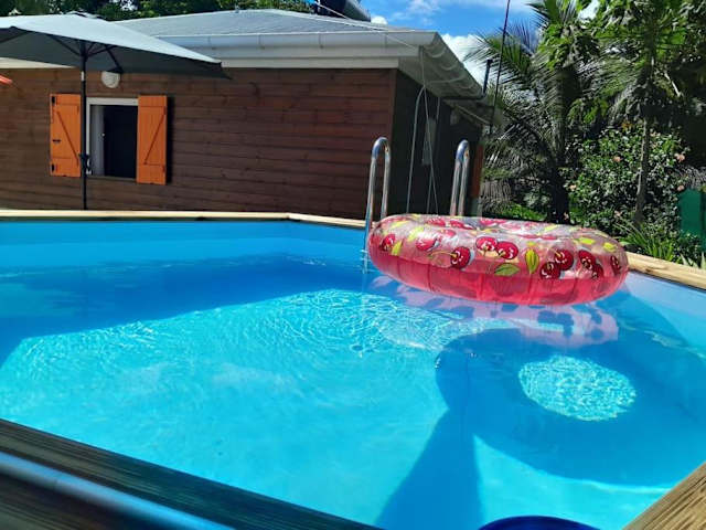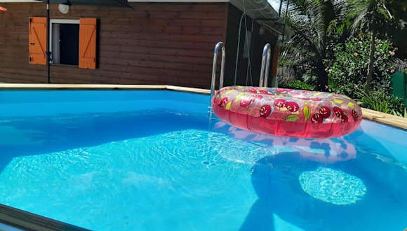 Bungalow Abricot bietet Übernachtungsmöglichkeiten in einem Ferienhaus mit kostenlosem WLAN, einem eigenen Pool und einer Terrasse. Es stehen kostenfreie Privatparkplätze zur Verfügung.