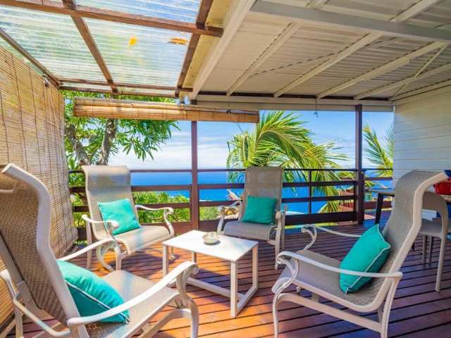 Verbringen Sie einen traumhaften Aufenthalt im Bungalow Poerava Punaauia Ocean View in Punaauia auf Tahiti. Genießen Sie den atemberaubenden Meerblick von Ihrem eigenen Balkon und entspannen Sie auf der Terrasse. Das klimatisierte Ferienhaus bietet Ihnen alle Annehmlichkeiten, die Sie für einen komfortablen Aufenthalt benötigen.