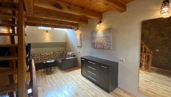 Der Bungalow Smiltele bietet geräumige Unterkünfte mit traditionellem Charme. Das Fischerhaus ist mit Holzmöbeln eingerichtet und verfügt über einen Flachbild-TV. Eine voll ausgestattete Küche mit E-Herd, Waschmaschine und Spülmaschine sorgt für einen komfortablen Aufenthalt. Genießen Sie den Blick auf die umliegende Landschaft von der Terrasse aus und nutzen Sie die Grillmöglichkeiten für gesellige Abende.