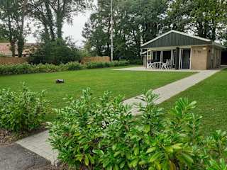 Bungalow/vakantiehuis op park Bavelds Dennen bietet Übernachtungsmöglichkeiten in einem Ferienhaus, das mit einer Terrasse ausgestattet ist und Gartenblick bietet. Freies WLAN ist ebenfalls verfügbar.