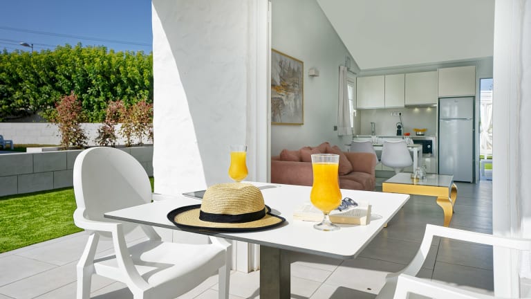 Die modernen Bungalows Adonis bieten Ihnen eine komfortable Unterkunft für Ihren Aufenthalt. Jeder Bungalow verfügt über eine Terrasse und einen eigenen Garten, in dem Sie sich entspannen und die Sonne genießen können. Im Inneren finden Sie einen 43-Zoll-Flachbild-Sat-TV und einen Safe für Ihre Wertsachen. Die Küche ist gut ausgestattet mit einem Wasserkocher, einem Elektroherd, einer Kaffeemaschine und einem Toaster. Das Badezimmer ist mit einer Dusche, einem Haartrockner und einem Vergrößerungsspiegel ausgestattet, um Ihren Komfort zu gewährleisten.