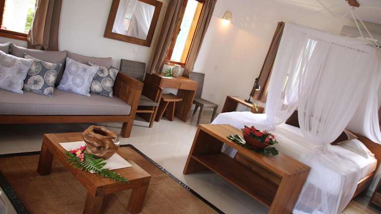 Das Domaine Les Rochers auf La Digue bietet seinen Gästen eine malerische Unterkunft inmitten eines tropischen Gartens und nur 150 m vom Strand entfernt. Die geräumigen Bungalows und Apartments zur Selbstverpflegung sind im kreolischen Stil gestaltet und verfügen über eine voll ausgestattete Küche sowie eine große Veranda. WLAN, Klimaanlage und ein Flachbild-Sat-TV sorgen für zusätzlichen Komfort. Die zentrale Lage ermöglicht es den Gästen, bequem zu Geschäften, Restaurants, Imbissen und einem Tauchzentrum zu gelangen. Die Anlegestelle für Fähren und verschiedene Strände sind ebenfalls in Gehweite erreichbar.