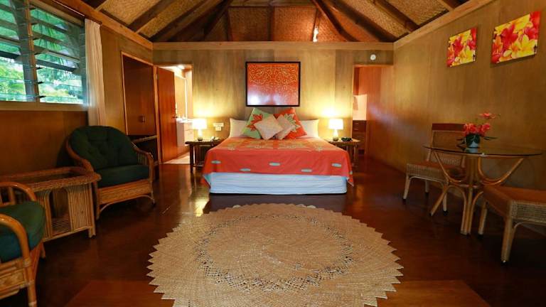 Die Unterkünfte im Muri Beach Hideaway sind unabhängige Bungalows im polynesischen Stil, die direkt am Strand liegen. Jeder Bungalow verfügt über eine Küchenzeile mit Herd, Mikrowelle und Kühlschrank sowie Deckenventilatoren und einen TV. Die meisten Unterkünfte bieten einen herrlichen Blick auf das Meer, den Pool oder den Garten. Bei Ihrer Ankunft erhalten Sie kostenlose Wasserflaschen, Saft, Milch und je nach Verfügbarkeit kostenfreies Obst der Saison. Sie können auch kostenlos Hängematten, Strandtücher und Riff-Schuhe nutzen.