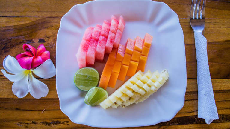 Die Bungalows verfügen über ein open-air Bad, was bedeutet, dass man ggf. beim Toilettenbesuch oder Zähneputzen nass werden kann. Das Zimmer an sich ist nicht groß, die Terasse ist dagegen überdacht und groß genug. Das Frühstück ist sehr einfach, weitere Speisen wurden mittags und abends nicht angeboten, als wir da waren. Damit wären wir bei einem Problem: in der Nähe gibt es keine wirklich guten landestypischen Restaurants, nur zwei überteuerte beachclubs. Also unbedingt einen Motorroller mieten. Der nächste…