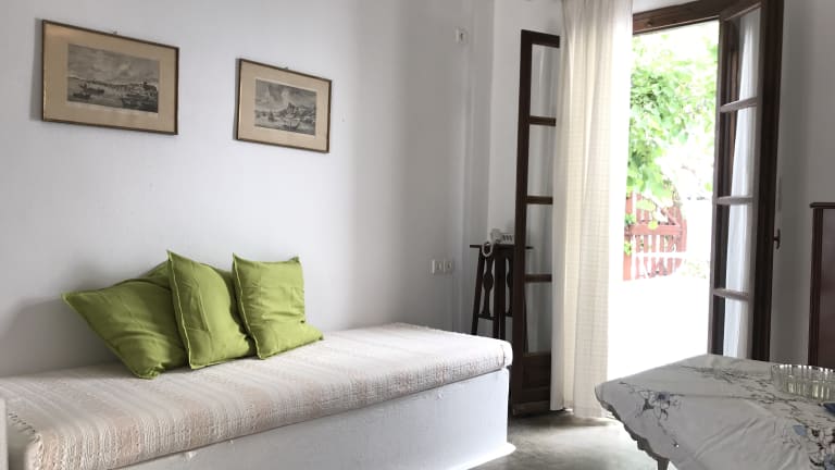 Studios und Apartments Alle Wohneinheiten sind individuell gestaltet und mit Deckenventilator, Telefon, Kochnische und W-LAN Internetzugang ausgestattet. Bei den Appartements ist jeweils eines der Zimmer Durchgangszimmer zur Dusche/WC bzw. zum Ausgang. Größtenteils sind die Betten, nach der Kykladischen Architektur, auf gemaurtem Sockeln. Alle Wohneinheiten haben eigene Balkons oder Terrassen und einige haben zusätzlich eine Dachterrasse, mit Gartenmöbeln und/ oder eingebauten Sofas, Sonnenschirm oder Pergolen.