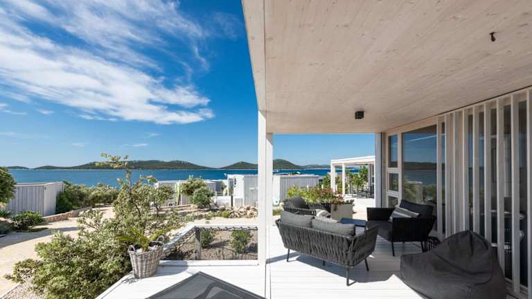 Home & Sea Vila 32 BUQEZ ECO RESORT bietet eine Unterkunft mit Garten und eigenem Strandbereich. Die Ferienunterkunft umfasst eine Terrasse sowie ein Wohnzimmer und ist ideal ausgestattet für einen erholsamen Aufenthalt.