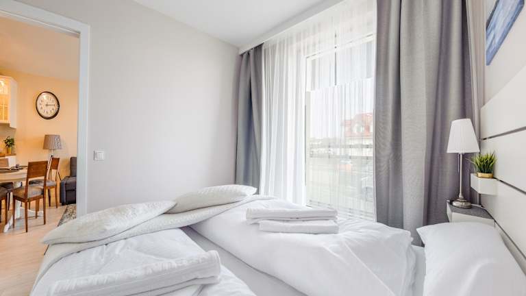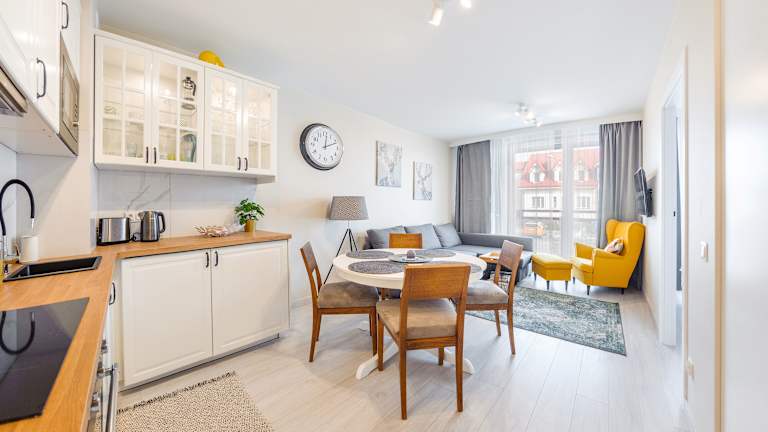 Apartamenty Sun & Snow Bursztynowa przy Zalewie Wiślanym bietet Übernachtungsmöglichkeiten in Form einer Ferienwohnung mit einem Schlafzimmer und einem Wohnzimmer.