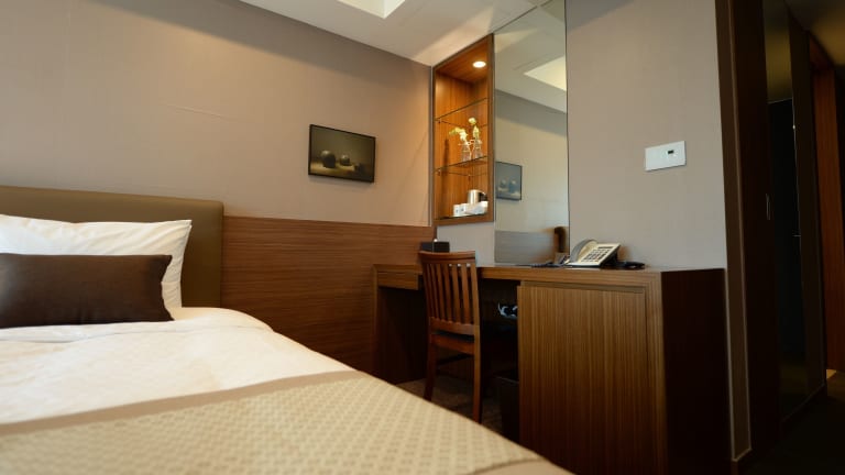 Die Zimmer im Busan Business Hotel sind modern und stilvoll eingerichtet. In hellbraunen Tönen gehalten, bieten sie eine warme und einladende Atmosphäre. Jedes Zimmer verfügt über Annehmlichkeiten wie einen an der Wand angebrachten Kabel-TV, einen Schreibtisch und einen Safe. Die Zimmer sind schallisoliert und klimatisiert, um einen ruhigen und angenehmen Aufenthalt zu gewährleisten. Die Badezimmer sind mit Marmorböden und -wänden ausgestattet und verfügen über eine Badewanne oder Dusche sowie Bademäntel und kostenlose Pflegeprodukte.