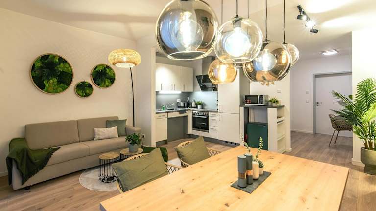Business Apartments Erfurt - Parkplatz - WLAN - Nähe Klinikum zentral bietet eine komfortable Ausstattung mit kostenlosem WLAN und einem kostenlosen Privatparkplatz. Zu den angebotenen Annehmlichkeiten zählen eine Terrasse mit Stadtblick sowie ein Sitzbereich. Die Unterkunft ist eine Nichtraucherunterkunft, die speziell dafür ausgelegt ist, Gästen eine ruhige Atmosphäre zu bieten. Darüber hinaus sind Junggesellenabschiede und ähnliche Feiern in der Unterkunft nicht gestattet.