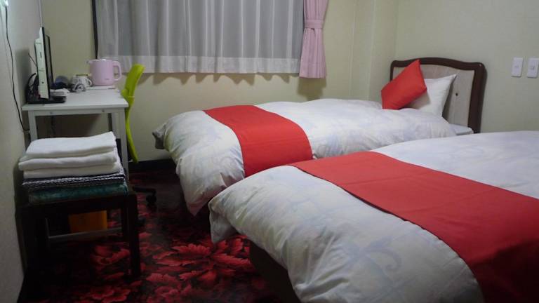 Die Zimmer im Business Hotel Kyugetsu sind komfortabel eingerichtet und verfügen über Annehmlichkeiten wie einen Flachbild-TV und eine Klimaanlage. Jedes Zimmer hat ein eigenes Badezimmer mit Dusche, Haartrockner und Hausschuhen. Ein Schreibtisch steht ebenfalls zur Verfügung.