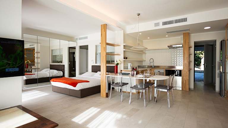 Das Hotel bietet ein Restaurant, ein Café und eine Bar, in denen Sie verschiedene gastronomische Angebote genießen können. Das tägliche Frühstück wird in einem hellen Speisesaal mit Blick auf den Pool in Buffetform serviert.