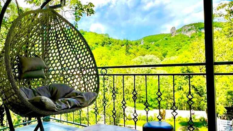 Das Butichi Guest House in Chiatʼura bietet seinen Gästen eine komfortable Unterkunft mit freundlichem Service und kostenfreiem WLAN. Die 24-Stunden-Rezeption sorgt dafür, dass Sie zu jeder Tages- und Nachtzeit betreut werden. Die Zimmer sind gemütlich eingerichtet und verfügen über einen Sitzbereich, der zum Entspannen einlädt. Obwohl die Badezimmer gemeinschaftlich genutzt werden, können Sie hier einen angenehmen Aufenthalt genießen. Der internationale Flughafen Kutaisi ist etwa 90 km entfernt und bietet eine gute Anbindung an die Unterkunft.