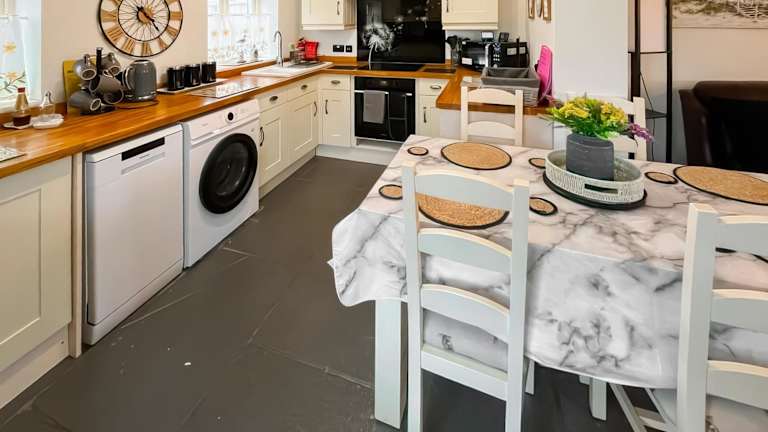 Das Ferienhaus umfasst zwei Schlafzimmer und bietet Annehmlichkeiten wie Fernsehen, eine Waschmaschine sowie eine Küche mit Geschirrspüler. Handtücher und Bettwäsche werden bereitgestellt. WLAN ist in allen Bereichen kostenlos verfügbar.