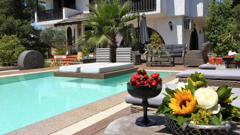 Die Exquisite Thassos Villa Villa Chateau bietet eine komfortable Unterkunft mit einem eigenen Pool. Sie ist ausgestattet mit 3 Schlafzimmern, 2 Badezimmern sowie einem Essbereich. Kostenfreies WLAN und eine Klimaanlage sind ebenfalls verfügbar. Die Unterkunft hat eine Nichtraucherpolitik und es sind keine Haustiere gestattet. Außerdem ist der Mindestalter für den Check-in 18 Jahre.