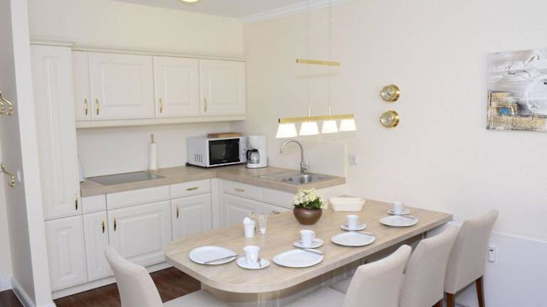 Das Apartment im C_Haus Cordula_ App_ 41 verfügt über 2 Schlafzimmer und bietet Platz für eine komfortable Übernachtung. Das Apartment ist gut ausgestattet mit einem TV und einer voll ausgestatteten Küche, die einen Kühlschrank, einen Geschirrspüler, eine Waschmaschine, eine Mikrowelle und ein Kochfeld umfasst. Auf dem Balkon können Sie die frische Luft genießen und die schöne Umgebung von Wenningstedt bewundern.