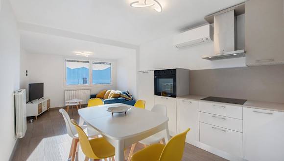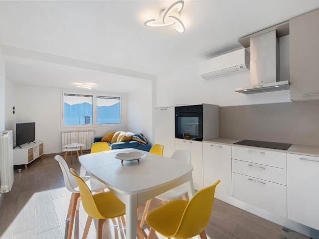 Die Ferienwohnung bietet zwei Schlafzimmer, eine voll ausgestattete Küche mit Kühlschrank und Geschirrspüler, ein bequemes Sitzbereich und ein Badezimmer mit Bidet. Handtücher und Bettwäsche sind in der Unterkunft vorhanden.