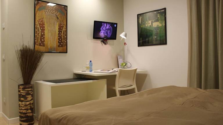 Die Zimmer im Ca degli Artisti sind klimatisiert und bieten eine angenehme Atmosphäre für einen erholsamen Aufenthalt. Jedes Zimmer verfügt über einen Schreibtisch, eine Kaffeemaschine, einen Kühlschrank, eine Mikrowelle, einen Safe und einen Flachbild-TV. Die Zimmer sind zudem mit einer Terrasse und einem eigenen Bad mit Bidet ausgestattet. Zur weiteren Ausstattung gehören ein Kleiderschrank und ein Wasserkocher.