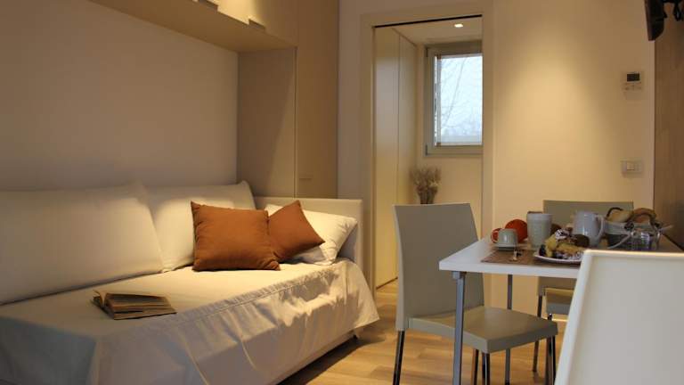 Das Ca degli Artisti bietet eine Gemeinschaftsküche, in der Sie Ihre eigenen Mahlzeiten zubereiten können. Alternativ steht Ihnen auch ein Zimmerservice zur Verfügung. In der Umgebung gibt es auch Restaurants und Cafés, in denen Sie lokale Spezialitäten genießen können.