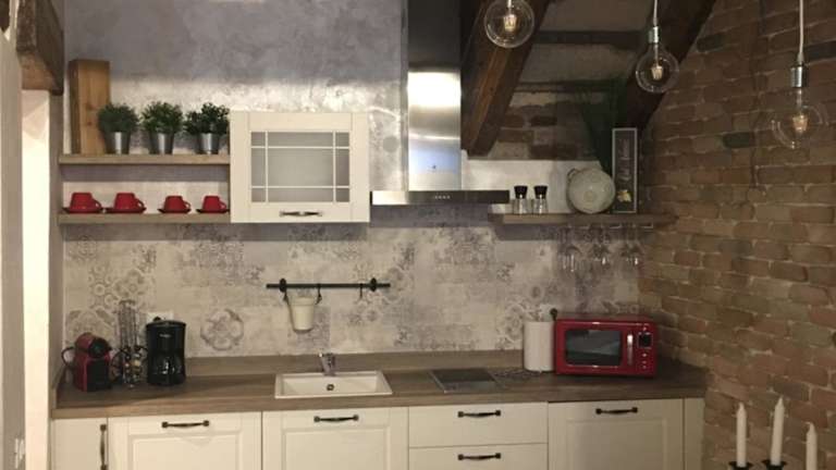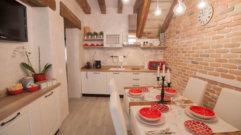 Ca del Pape ist ein Apartment, das Gästen eine private Unterkunft mit kostenfreiem WLAN bietet. Das Apartment zeichnet sich durch eine ansprechende Architektur aus, die Holzbalkendecken und Holzböden umfasst.