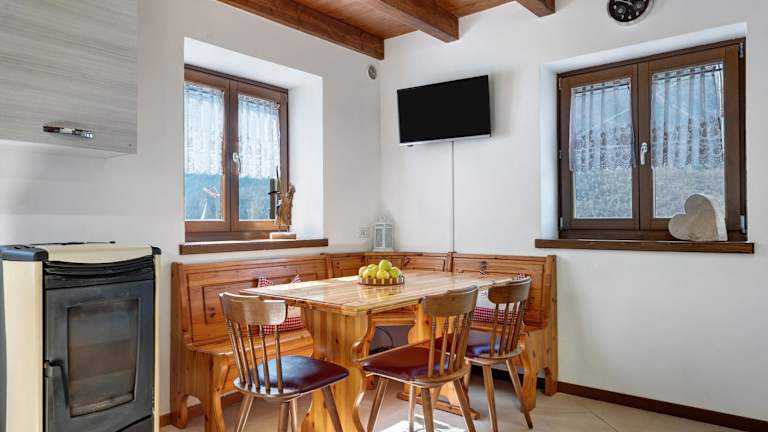 Das Ferienhaus umfasst 3 Schlafzimmer, ein Badezimmer, Bettwäsche, Handtücher und einen TV mit Satellitenkanälen. Die voll ausgestattete Küche ermöglicht die Selbstversorgung. Zudem gibt es eine Terrasse, die einen Blick auf die umliegenden Berge bietet.