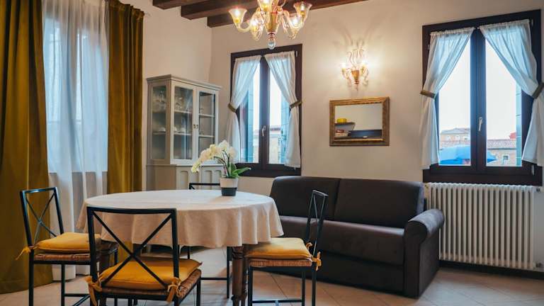 Die Cà Mazzega Murano Grand Canal View Apartments bieten elegante Unterkünfte mit atemberaubendem Kanalblick auf der Insel Murano. Die komplett ausgestattete Küchenzeile und der kostenfreie WLAN-Zugang sorgen für einen komfortablen Aufenthalt. Genießen Sie Ihre Mahlzeiten im eigenen Garten und erkunden Sie die Umgebung, die von Glasfabriken und Geschäften geprägt ist. Die Nähe zur Vaporetto-Haltestelle Venier ermöglicht eine bequeme Anbindung an Venedig und den Bahnhof Santa Lucia. Das Museo del Vetro von Murano ist nur einen kurzen Spaziergang entfernt.