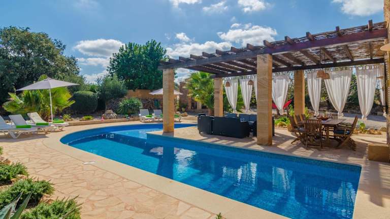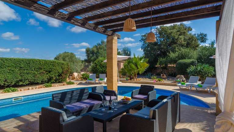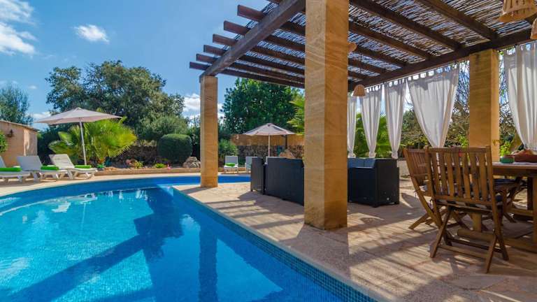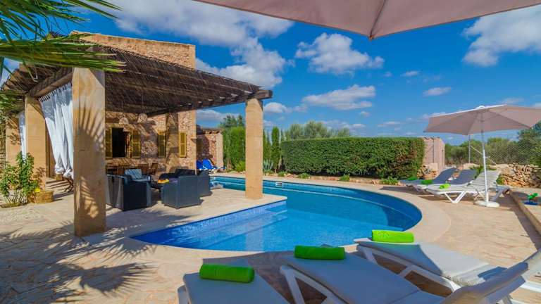 Die Villa Ca Na Carme verfügt über 4 gemütliche Schlafzimmer und 1 Badezimmer. Die Zimmer sind mit komfortabler Bettwäsche und Handtüchern ausgestattet. Im Wohnbereich finden Sie einen Sat-TV, während der Essbereich Platz für gesellige Mahlzeiten bietet. Die voll ausgestattete Küche ermöglicht es Ihnen, Ihre Lieblingsgerichte zuzubereiten. Von der Terrasse aus können Sie den Blick auf den privaten Pool genießen und sich entspannen.