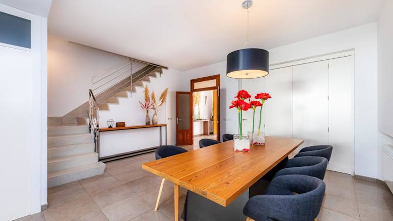 Das Ferienhaus Ca Na Xisca bietet klimatisierte Übernachtungsmöglichkeiten mit Balkon und kostenlosem WLAN. Es handelt sich um eine Unterkunft mit einer Veranda und einer Terrasse, die einen Blick auf den Garten bietet. Die Ausstattung umfasst vier Schlafzimmer und drei Badezimmer sowie Bettwäsche und Handtücher. Ein TV mit Satellitenkanälen und eine voll ausgestattete Küche runden das Angebot ab.