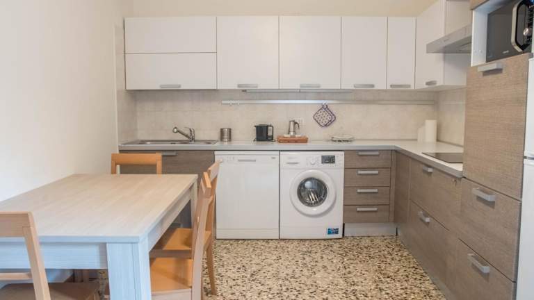 Die Ferienwohnung besteht aus zwei Schlafzimmern, einem Wohnzimmer und einer voll ausgestatteten Küche mit Geschirrspüler. Zudem gibt es ein Badezimmer mit Badewanne und Haartrockner. Die Unterkunft ist klimatisiert und bietet Annehmlichkeiten wie Bettwäsche und Handtücher, die nach den Richtlinien der örtlichen Behörden gewaschen werden.