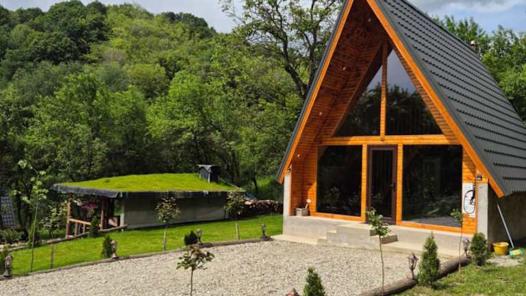 Das Cabana Aframe Olanesti in Olăneşti ist eine ideale Unterkunft für einen entspannten Aufenthalt inmitten der Natur. Das Chalet bietet eine schöne Terrasse, kostenfreies WLAN und einen Gartenblick. Die Unterkunft verfügt über ein separates Schlafzimmer, ein gemütliches Wohnzimmer und eine voll ausgestattete Küche. Ein Kinderspielplatz sorgt für Unterhaltung der kleinen Gäste. Die Lage des Chalets ermöglicht es Ihnen, die Natur zu erkunden und den nahegelegenen Cozia AquaPark zu besuchen.