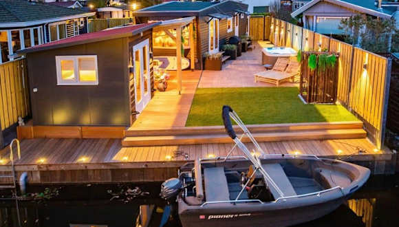 Die Unterkunft Cabana incl boat, jacuzzi, subboarts on a quiet park with private parking bietet eine komfortable Ferienwohnung mit einem Garten und einer Terrasse. Diese ist ideal für Gäste, die Ruhe suchen und trotzdem in der Nähe von kulturellen Einrichtungen sein möchten.