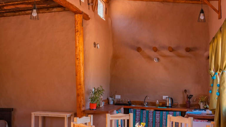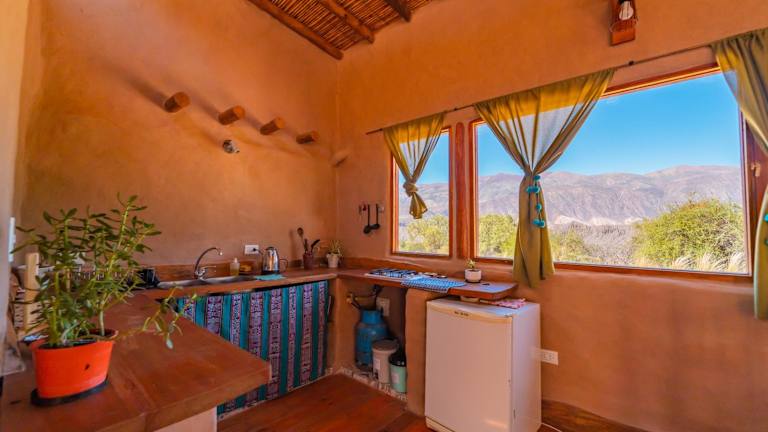 Die Unterkünfte im Cabaña Misk'i Nuna, en las afueras de Tilcara sind gemütlich und komfortabel eingerichtet. Jedes Chalet verfügt über eine Terrasse mit herrlichem Bergblick, eine gut ausgestattete Küche mit Kühlschrank und Kochfeld sowie ein eigenes Badezimmer mit Bidet. Ein separater Sitz- und Essbereich sorgt für zusätzlichen Komfort.